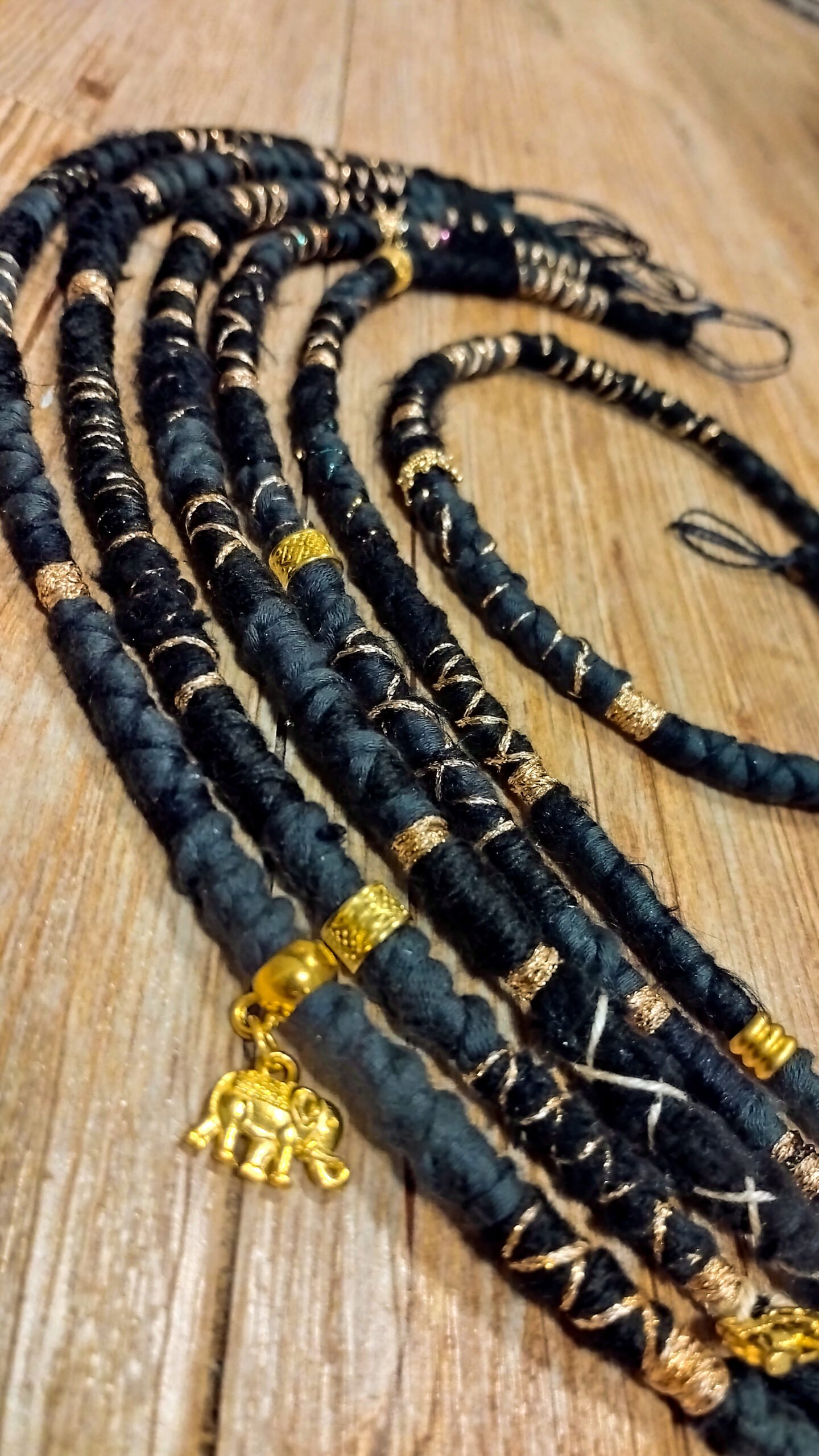 Hairwraps/ Dreadwraps in Schwarz-Gold als Haarschmuck zum Einflechten in normales Haar oder zum Einhängen in einen Dread!