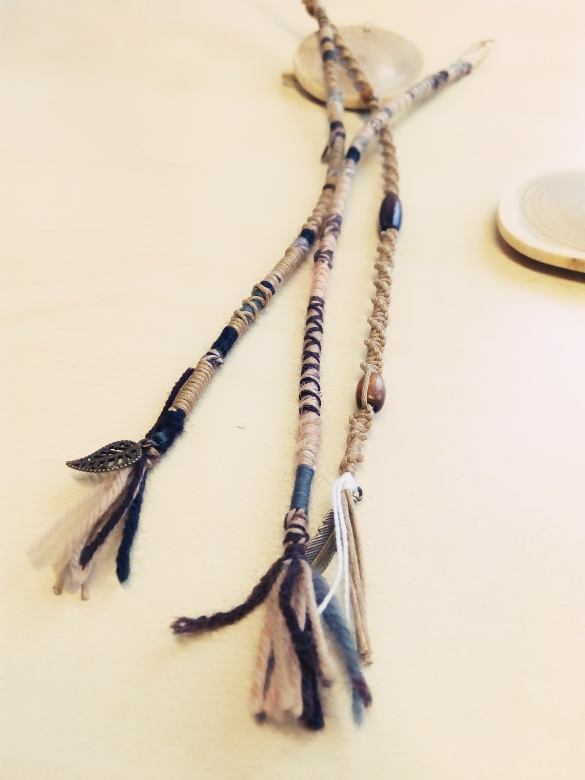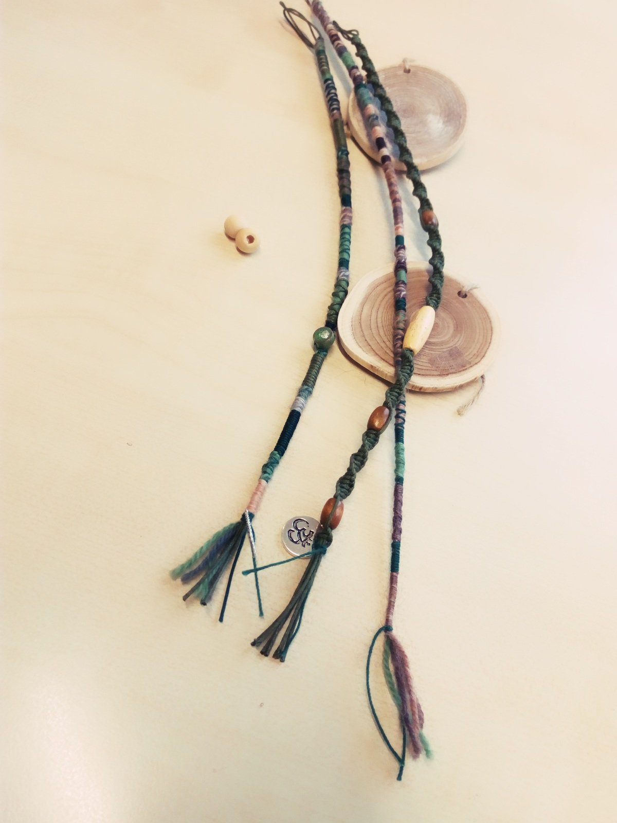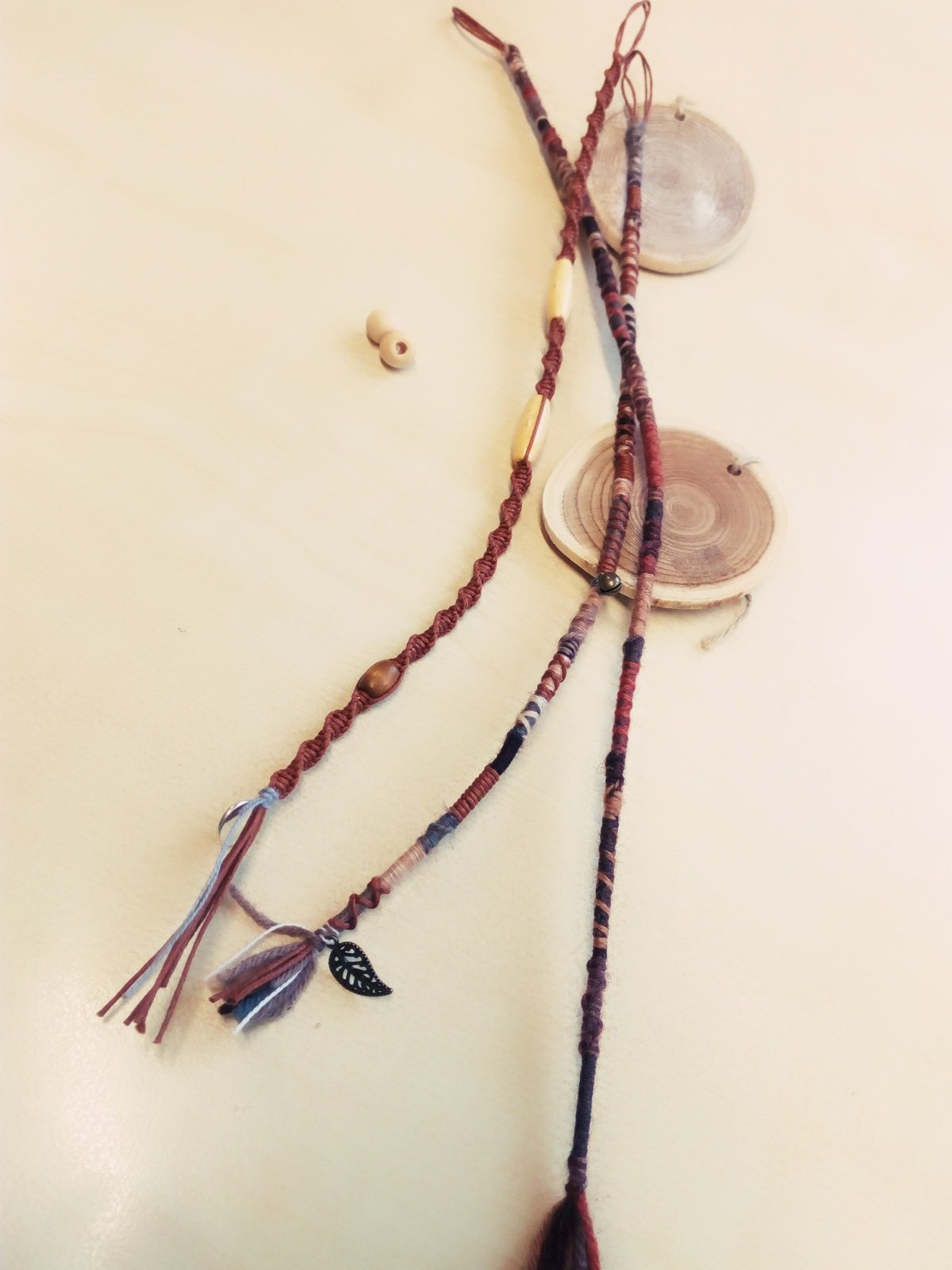 3. Dreadwrap Makramee geknüpft aus gewachster Baumwollschnur mit Holzperlen und Schmuckanhänger