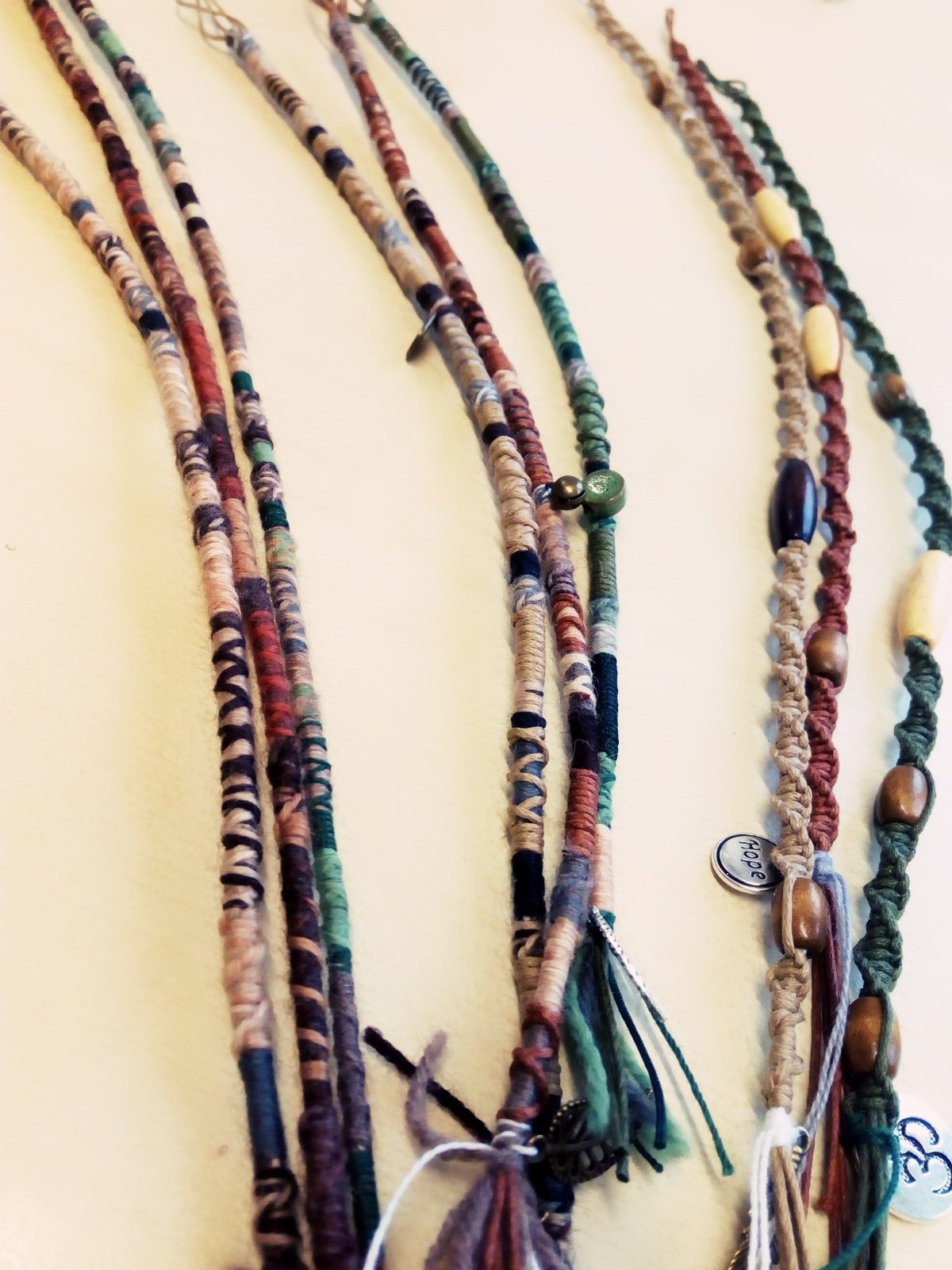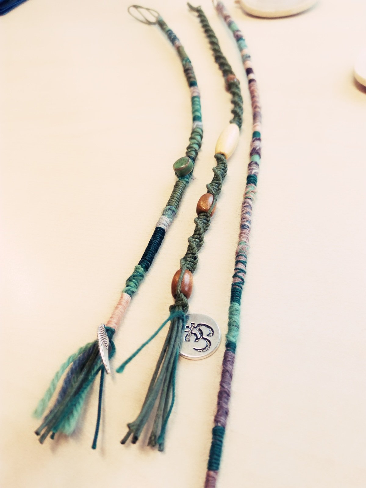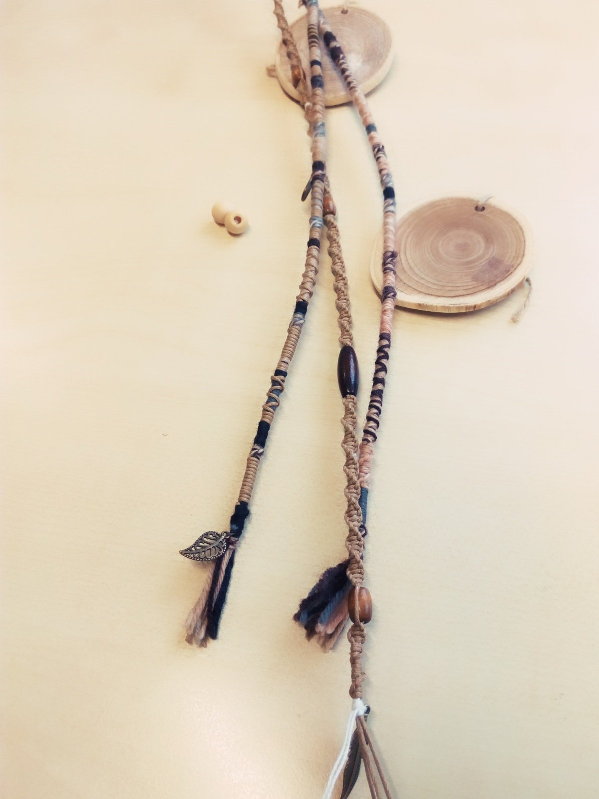 3. Dreadwrap Makramee geknüpft aus gewachster Baumwollschnur mit Holzperlen und Schmuckanhänger