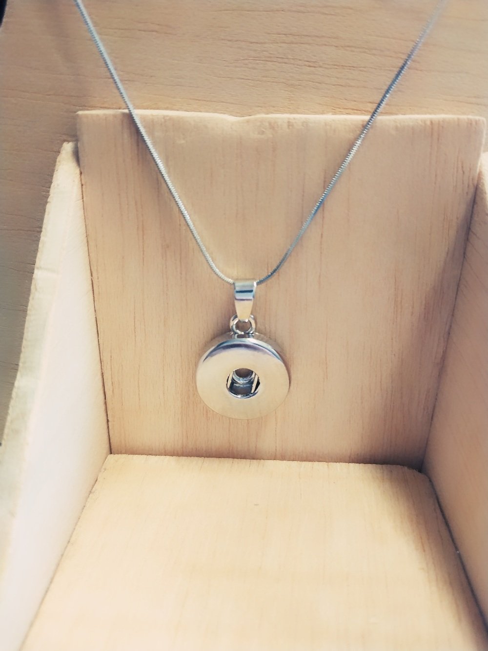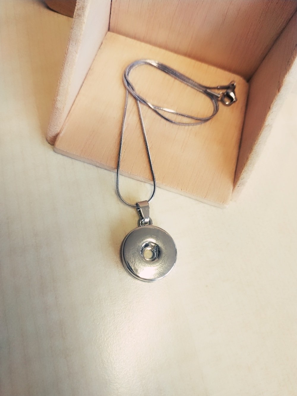 Diese Edelstahlhalskette mit Anhänger (Zinklegierung;nickelfrei) ist geeignet für Glascabochons (Druckknöpfe) mit 18 mm Durchmesser.