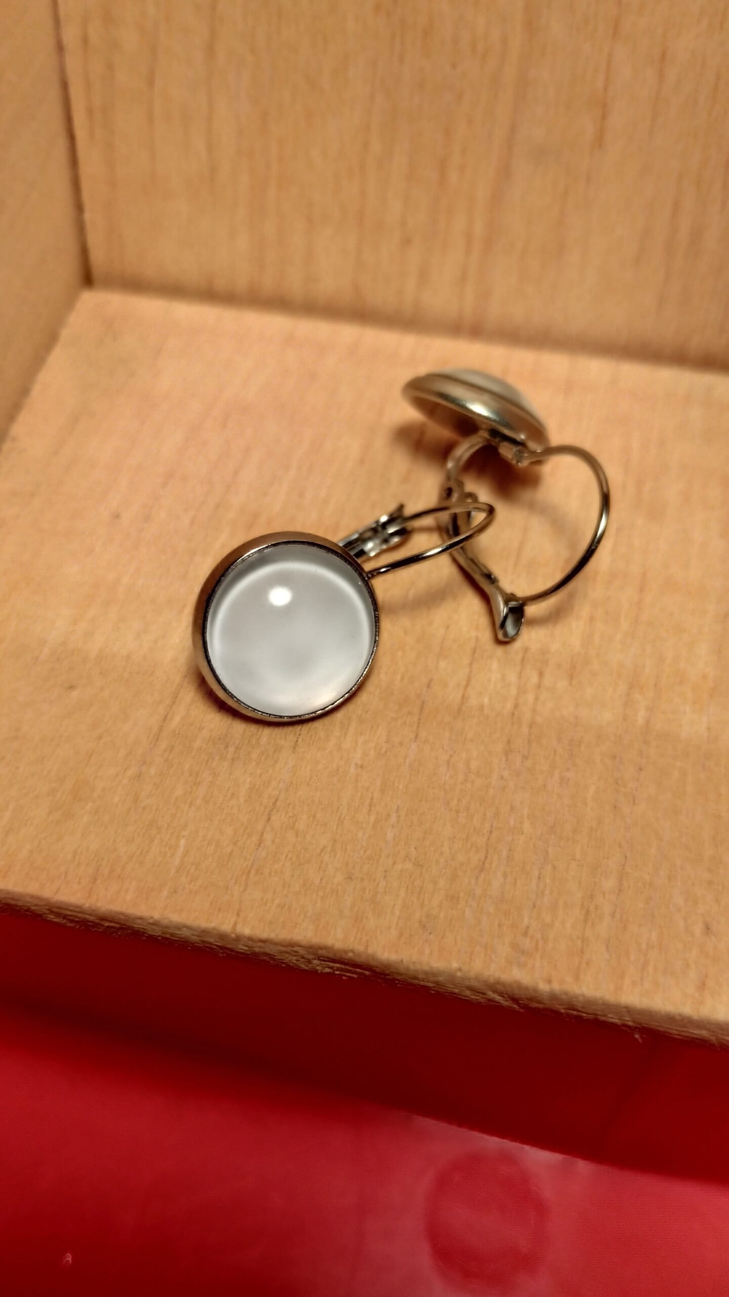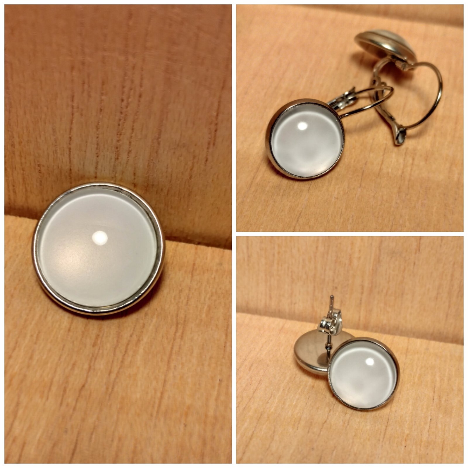 Dieses Set besteht aus einem Cabochon-Druckknopf und einem passenden Paar Hängeohrringen oder Ohrstecker.